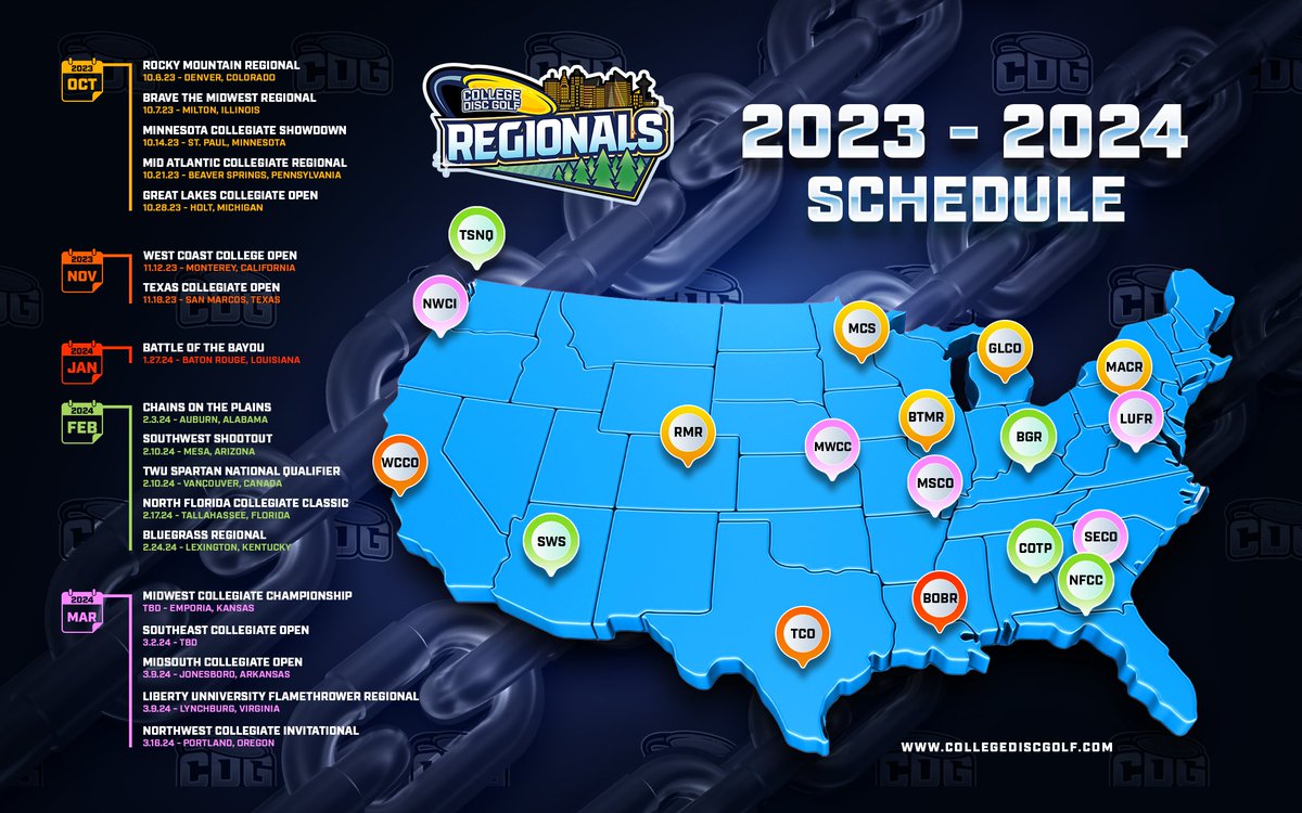 College Disc Golf on X: “???? 2023 2024 College Disc Golf Regional